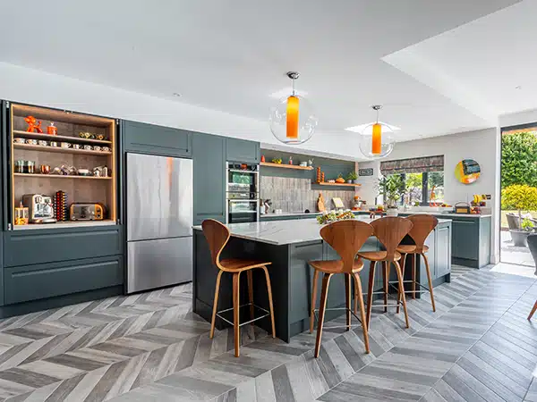 Those timeless kitchen features such as stone, marble or solid wood worktops and shelving will pair with almost any colour – our team can show you lots of ideas to play around with, until you find the perfect match.
